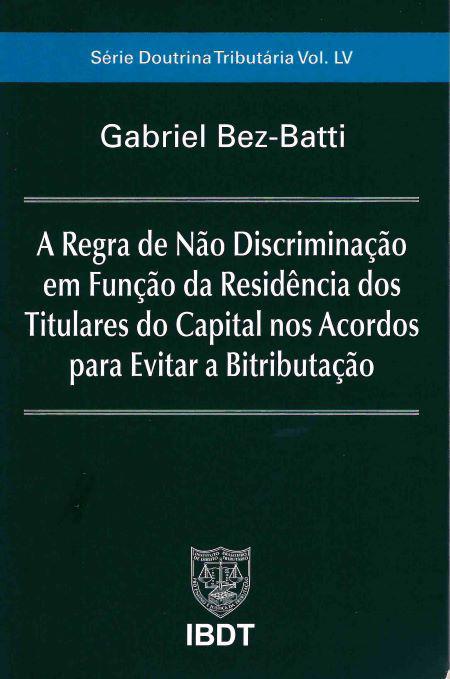 |  | Bez-Batti, Gabriel. Doutrina Tributária: A regra de não discriminação em função da residência dos titulares do capital nos acordos para evitar a bitributação . São Paulo: IBDT. 2024. v. 55. 208 p. |