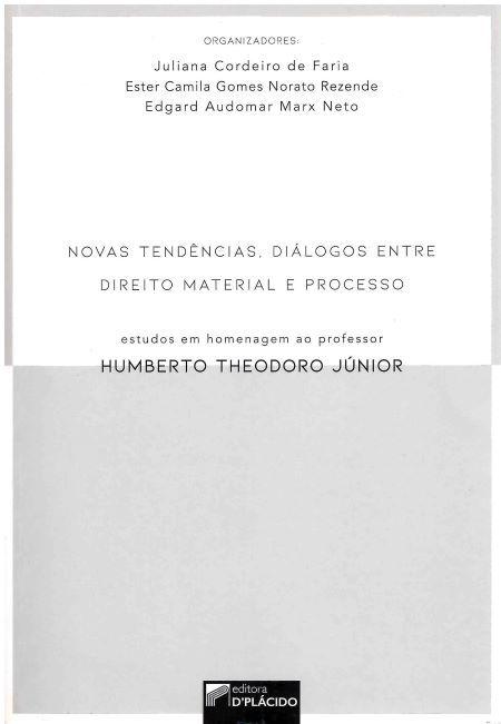 |  | Faria, Juliana Cordeiro de; Rezende, Ester Camila Gomes Norato; Marx Neto, Edgard Audomar (org.). Novas tendências, diálogos entre direito material e processo : estudos em homenagem ao professor Humberto Theodoro Júnior. Belo Horizonte: Editora D'Plácido. 2018. 571 p. |