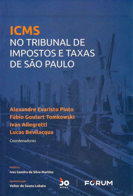|  | Pinto, Alexandre Evaristo; Tomkowski, Fábio Goulart; Allegretti, Ivan; Bevilacqua, Lucas. (coord.). ICMS no Tribunal de Impostos e Taxas de São Paulo . Belo Horizonte: Fórum. 2022. 525 p. |