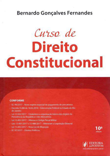 |  | Fernandes, Bernardo Gonçalves. Curso de direito constitucional : Bernardo Gonçalves Fernandes. Salvador: JusPODIVM. 2018. 1840 p. |