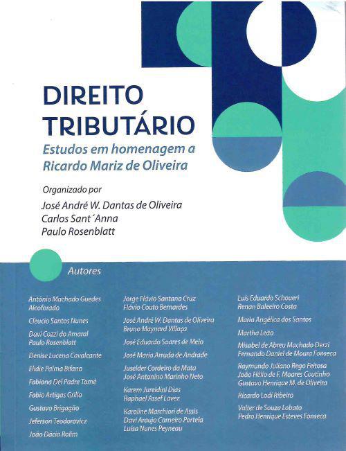 |  | Oliveira, José André W. Dantas de; Sant'Anna, Carlos; Rosenblatt, Paulo(org.). Direito tributário : estudos em homenagem a Ricardo Mariz de Oliveira. Recife, PE: Ordem dos Advogados do Brasil Seção PE. 2023. 552 p. |