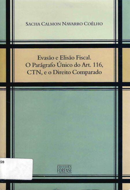 |  | Coêlho, Sacha Calmon Navarro. Evasão e elisão fiscal : parágrafo único do artigo 116, CTN, e o direito comparado. Rio de Janeiro: Editora Forense, 2006. 224 p. |