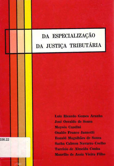 |  | Aranha, Luiz Ricardo Gomes et. al. Candini, Moysés. Jannotti, Onaldo Franco. Côelho, Sacha Calmon Navarro. Cunha, Tarcísio de Almeida. Souza, José Osvaldo de. Souza, Ronald Magalhães de. Vieira Filho, Maurílio de Assis. Da especialização da justiça tributária . Belo Horizonte: Secretaria de Estado da Fazenda de Minas Gerais, Procuradoria Fiscal, 1974. 165 p. |