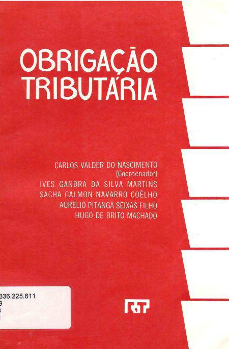 |  | Martins, Ives Gandra da Silva. Coêlho, Sacha Calmon Navarro. Seixas Filho, Aurélio Pitanga. Machado, Hugo de Brito. Obrigação Tributária . São Paulo: Editora Revista dos Tribunais, 1988. 107 p. |