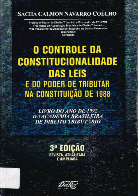 |  | Coêlho, Sacha Calmon Navarro. O controle da constitucionalidade das leis : e do poder de tributar na Constituiççao de 1988. Belo Horizonte: Editora Del Rey, 1999. 541 p. |